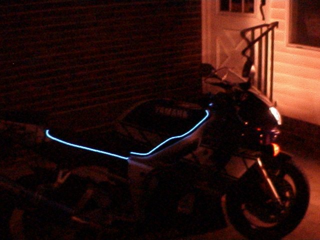 Only the Neon is turned on around the Gas Tank and the Seat. |